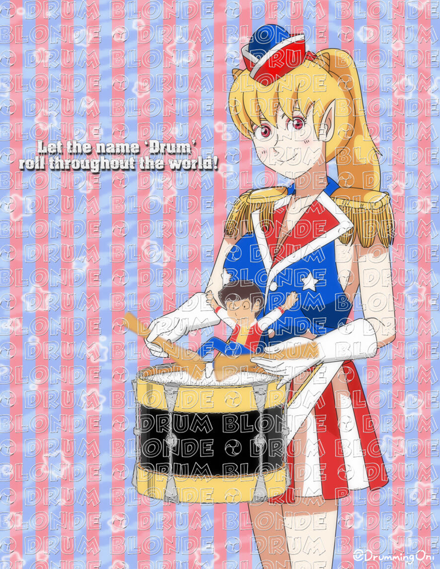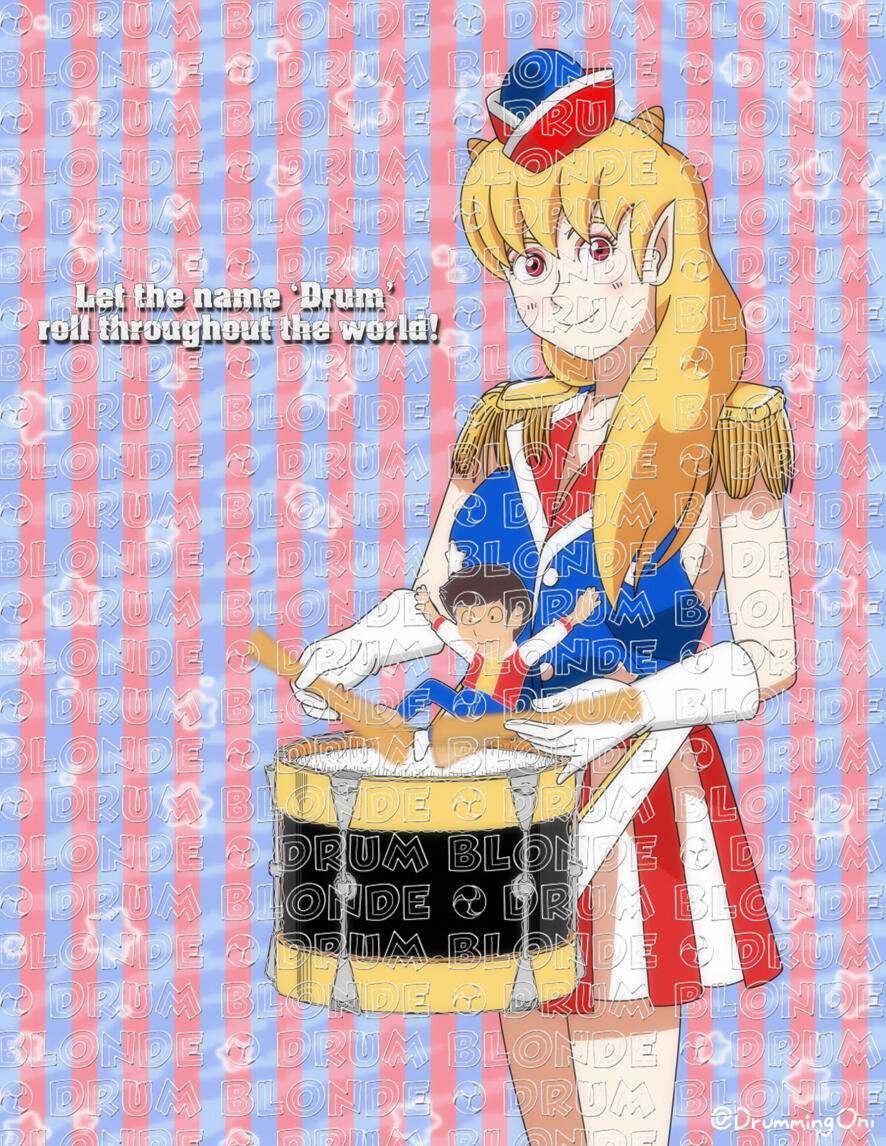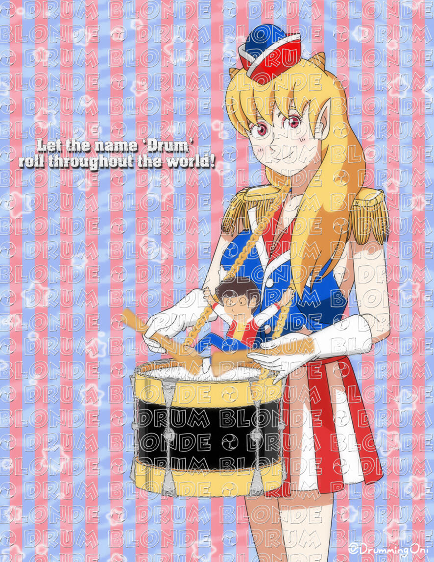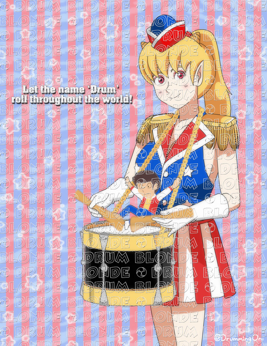 This is my oni mascot. The drum blonde herself. Her name is Drum. She is an alien princess who loves to play the drums.